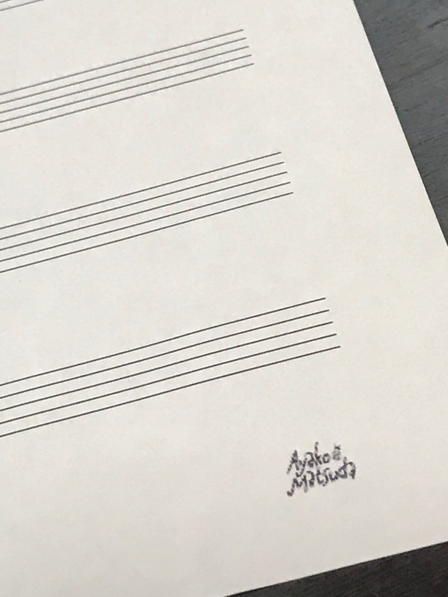 ちょっとやってみた 2020.04.20.Mon 五線紙って、自分に合ったつくりのものがなかなか無くて、 いつもエクセル(表計算)で作っています。 今回は右下に自分のロゴをいれてみました! う〜ん せっかくのかわゆいてんとう虫がつぶれてる… ちょっと悔しくて(笑)、レーザープリンターで出してみたら、キレイにロゴが入りました!