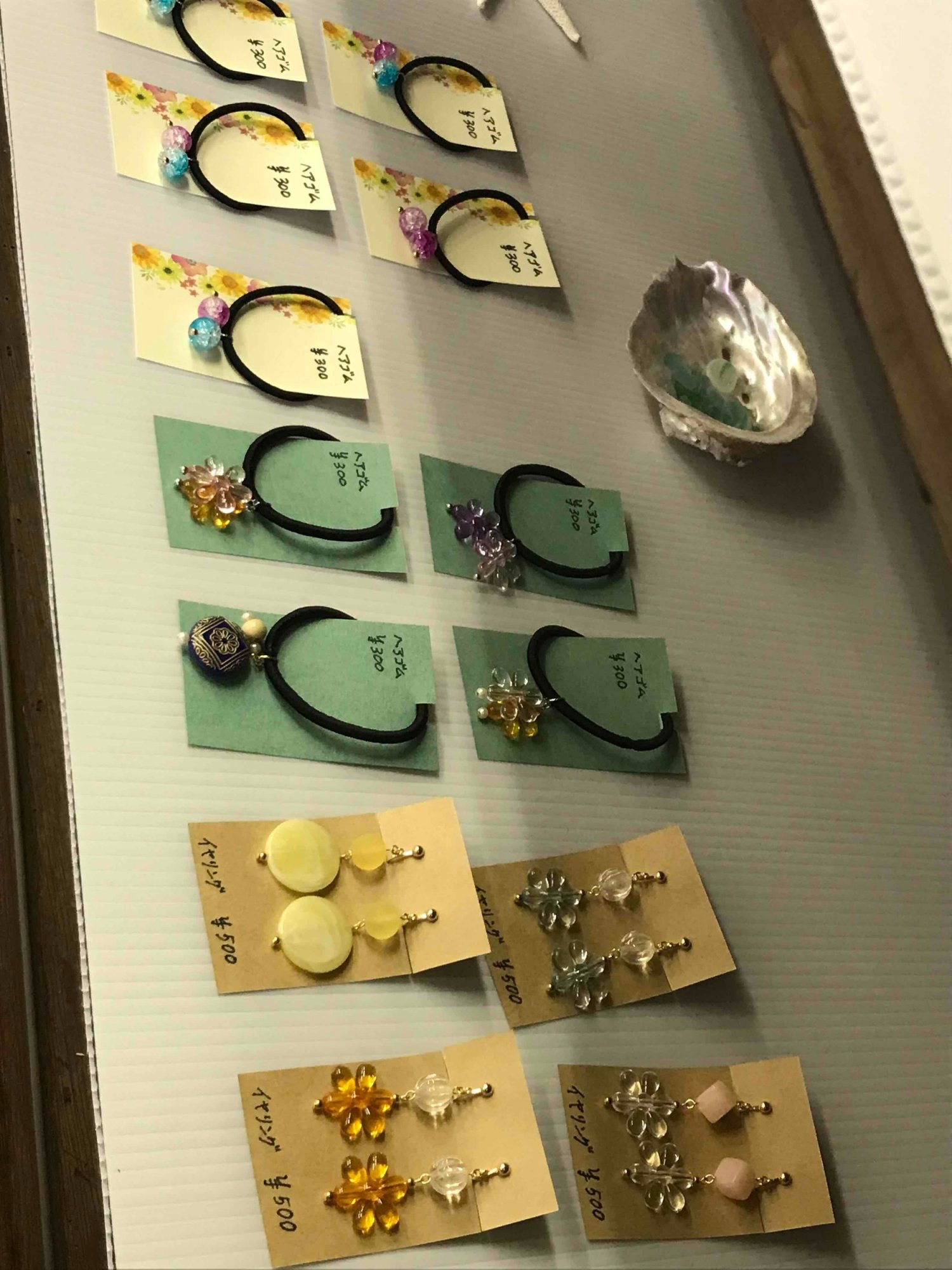 下のアクセサリーは海音呼屋(うみねこや)さんのもの