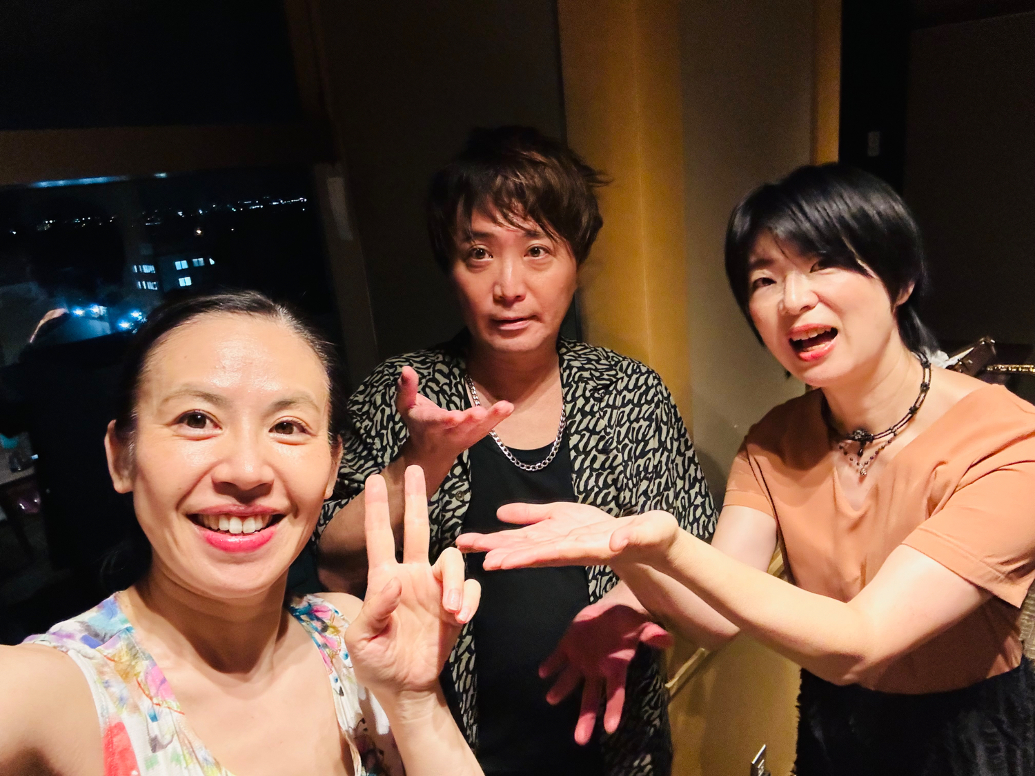 打ち合わせや着替えの後、待ちながらコワ~い話で3人で盛り上がっておりました。