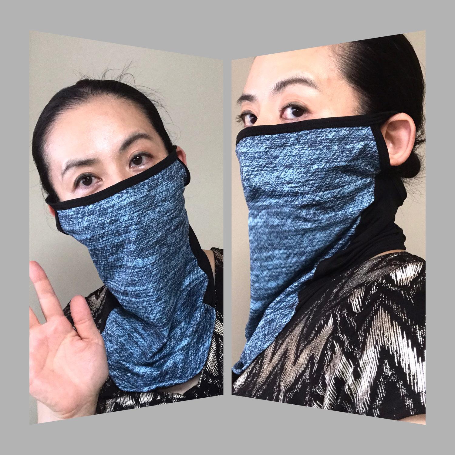 あくまで歌う際には、顎を引いてないと布を吸い込んでしまいますが・・・よろしければ参考に。