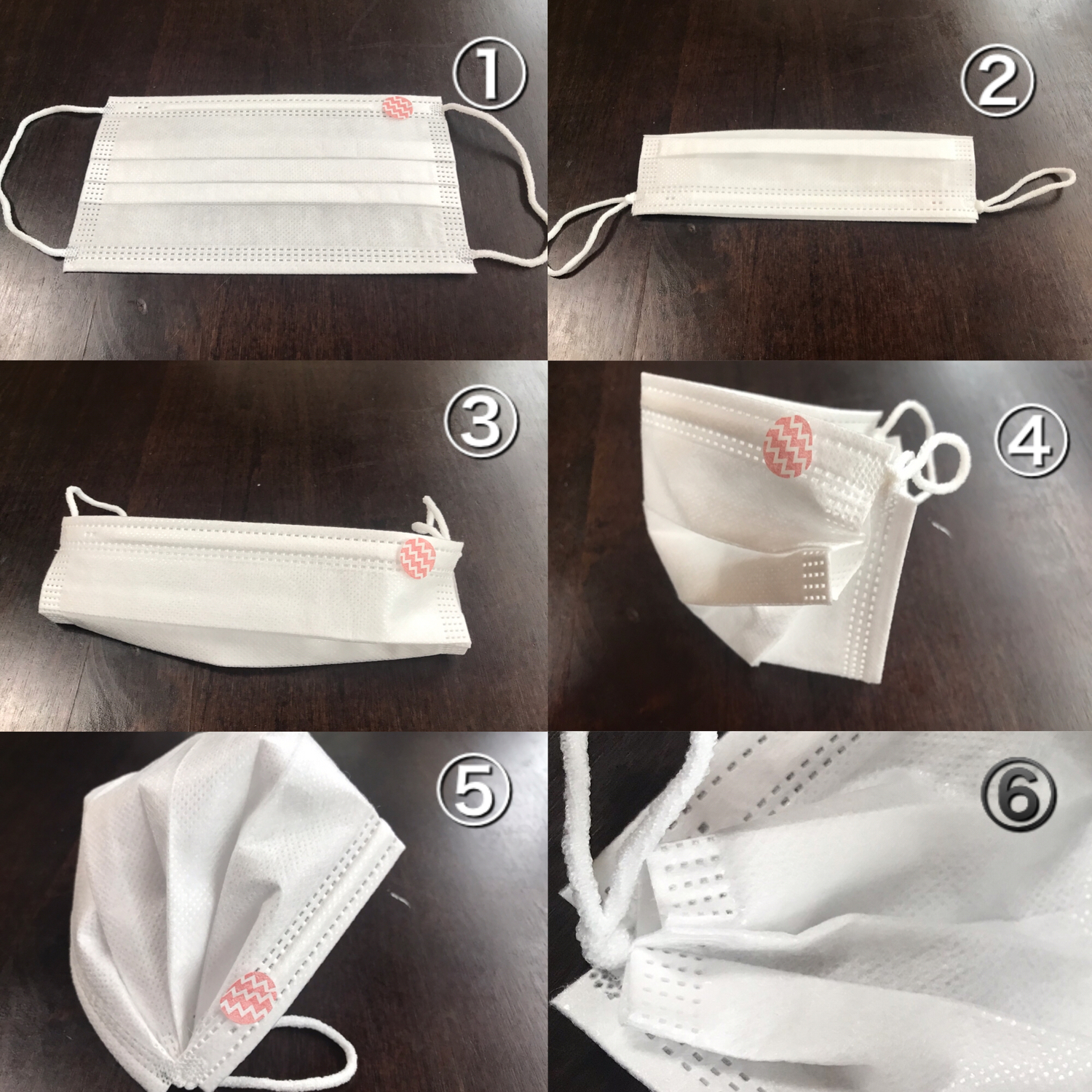 ①マスクの表裏を確認(シールがついているのが表)