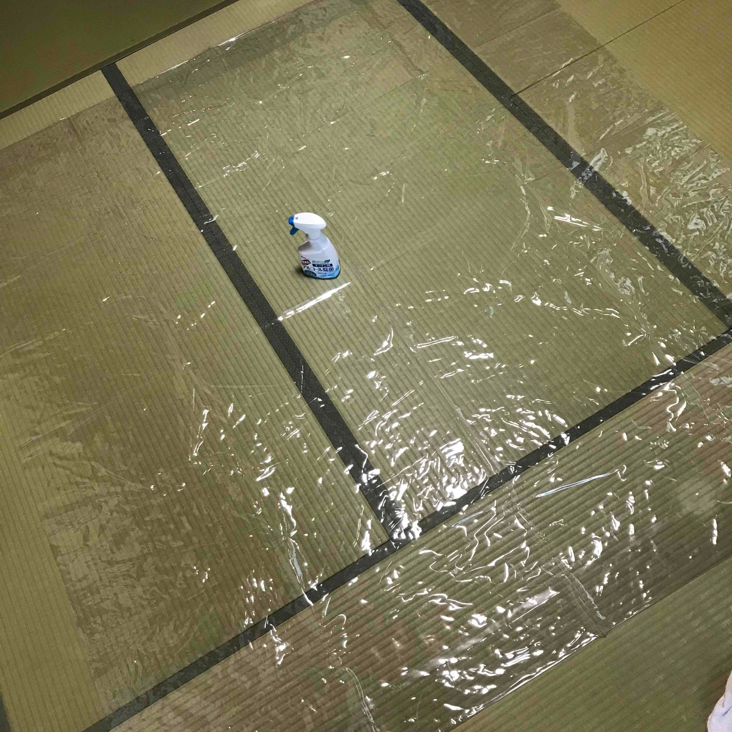 自宅に帰ってからシートをあらめて広げてアルコール消毒している状態が下の写真