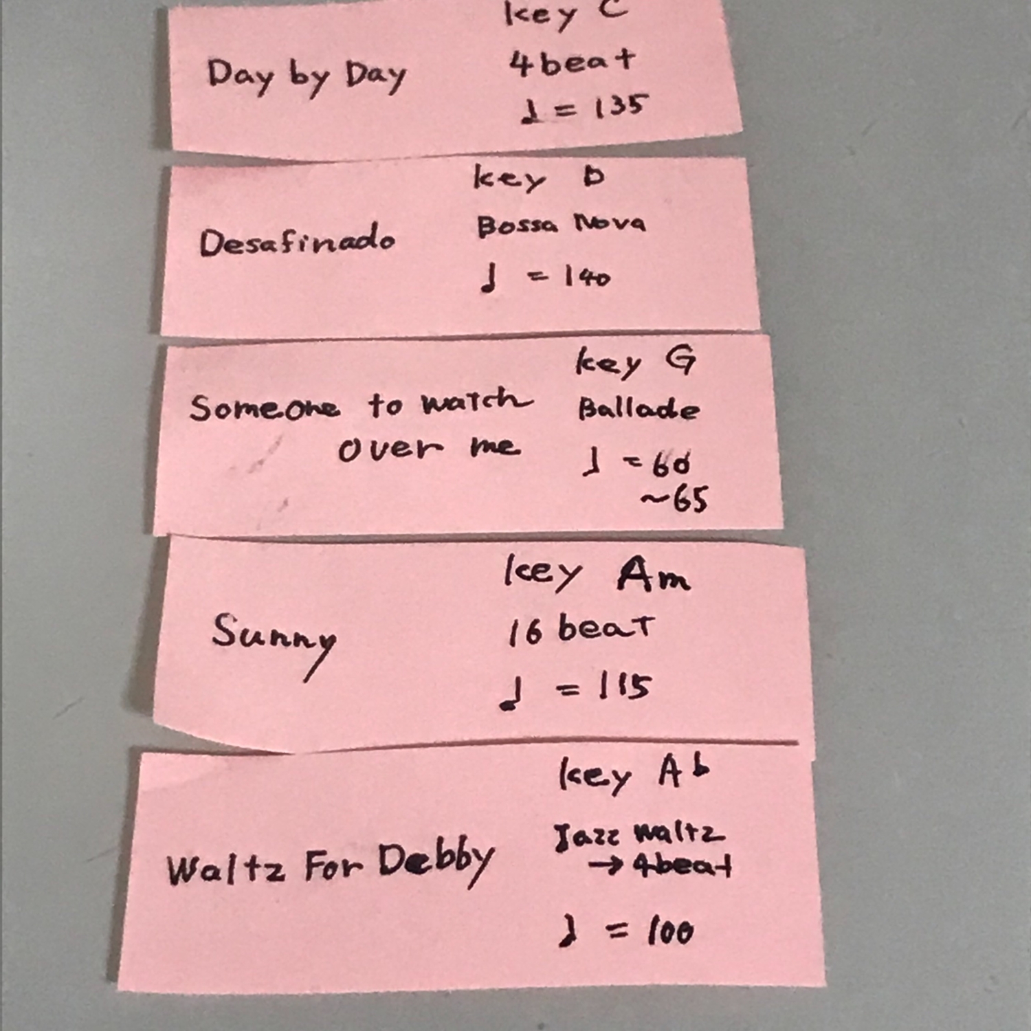 実は、2曲、3曲続けておなじkey が続くと、聞いてくださるお客様がジャズのことやジャズに限らず自分があまり知らないジャンルの楽曲を聴いているときに、同じ曲が続いているような錯覚に陥りがちになるのです。