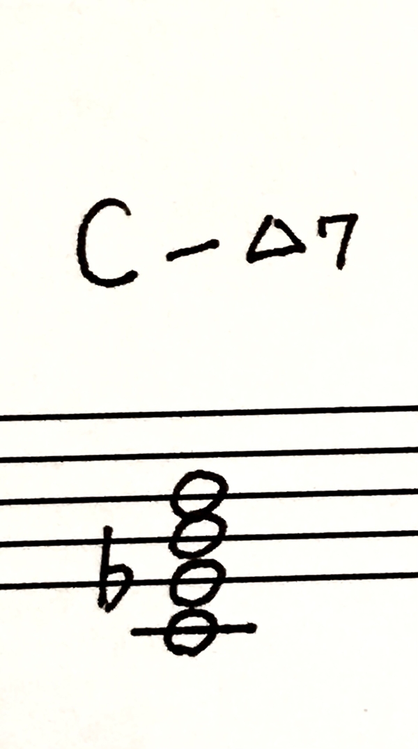 ド(C)の上に短3度(ミ♭)の音と長3度(ソ)の音を重ねたCm(Cマイナー)というコードに短7度(シ♭)を重ねた和音の塊です。