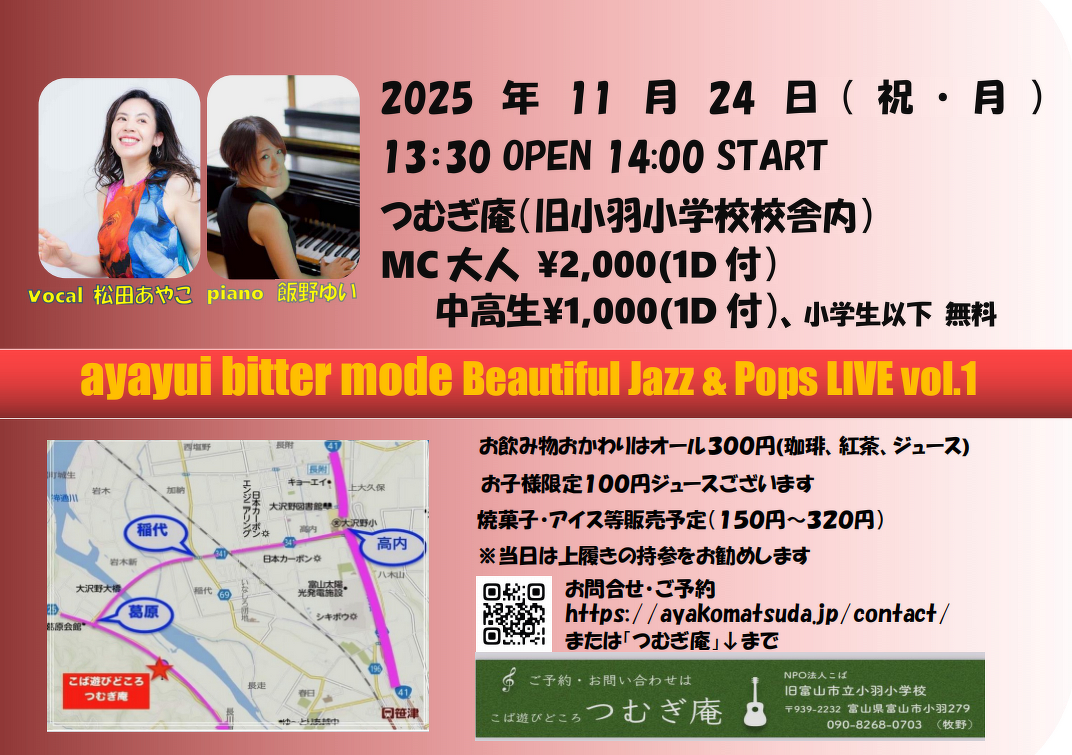 LIVE当日のご案内 11/24(祝・月)ayayui bitter mode Beautiful Jazz & Pops LIVE